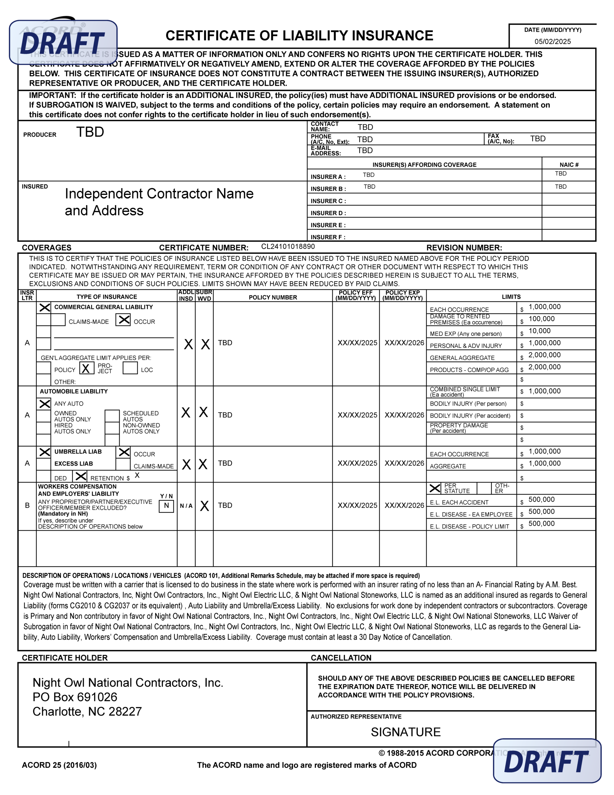 By uploading this file, you acknowledge that the C.O.I. meets the criteria listed above. Failure to meet the listed criteria will result in the application being rejected.